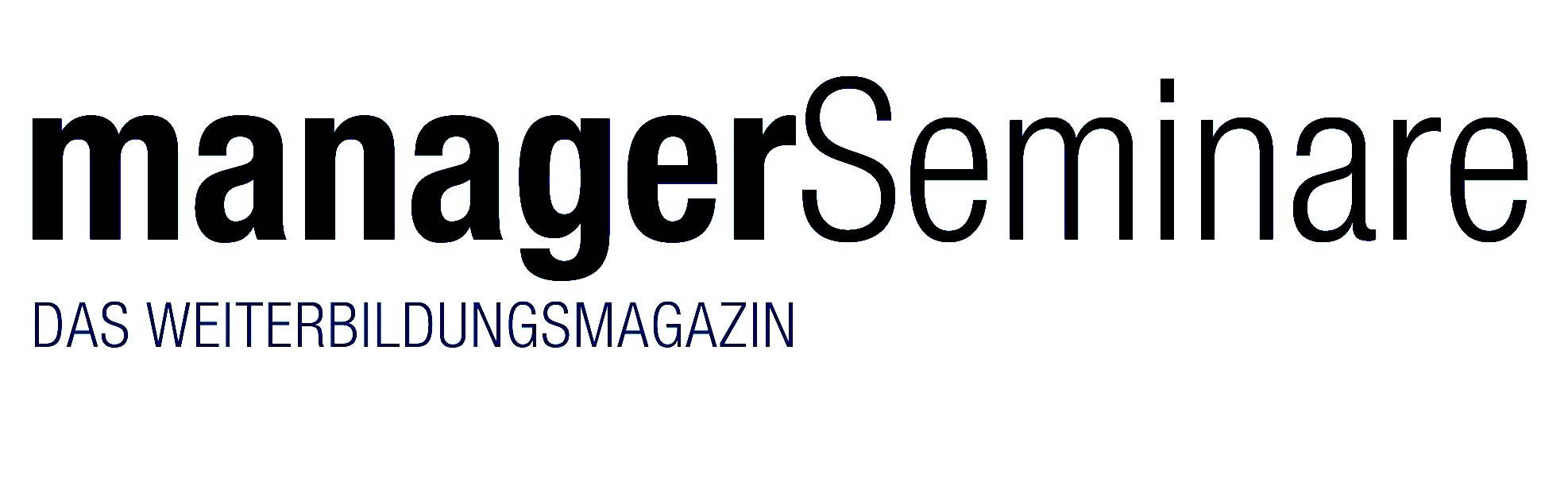Logo für managerSeminare mit dem Untertitel DAS WEITERBILDUNGSMAGAZIN in blauer Schrift unterhalb des Haupttitels.